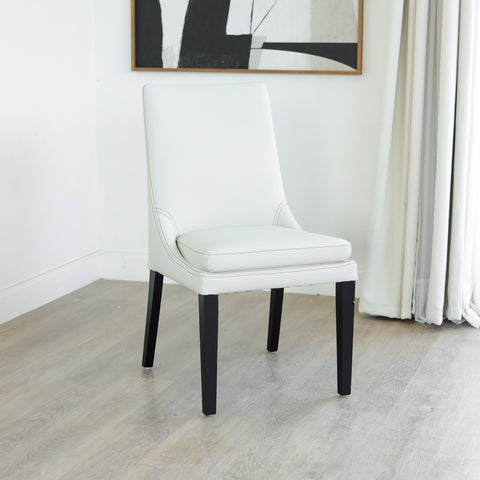 Chaise Sinatra en cuir végane crème avec coutures contrastantes et pattes en bois noir.