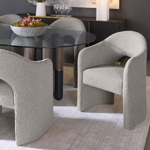 Chaise de cuisine en tissu bouclé argent - Sofia