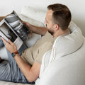 Faites de CLÉMENTINE votre nid douillet. Ce fauteuil pivotant rond et surdimensionné est parfait pour un moment de détente en solo, ou pour se blottir confortablement avec les gens que vous aimez!