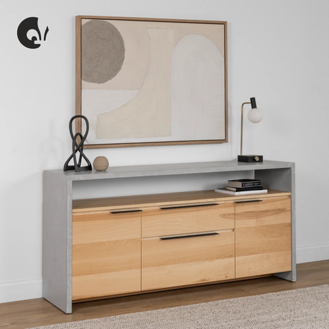 Buffet en béton ciment et merisier naturel - Anabel