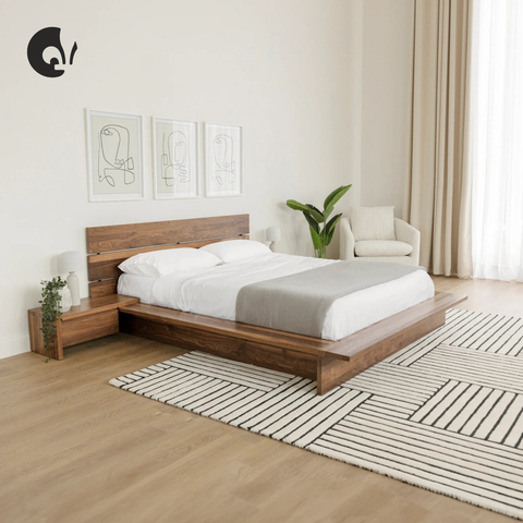 Toute de noyer massif naturel au fini lisse, nous pouvons affirmer avec certitude que la robustesse de notre base de lit Estérel est sans égal! Ses lignes pures, ainsi que la couleur et le grain sinueux du noyer lui permettent de s'adapter à tout type de décor!