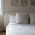 Coussin NINA en tissu bouclé gris et rembourrage en plumes.