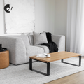 Notre intemporelle table de centre RAPHAËLLE complètera votre espace à merveille. Toute de bois massif et d'acier, sa conception à la fois robuste et raffinée fait d'elle un classique à chérir pendant de longues années.