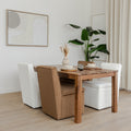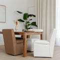 La chaise de salle à manger Éloïse avec rangement intégré se distingue par son design inédit sans piétement apparent. Entièrement habillée de son revêtement, elle crée une impression de bloc homogène et élégant, facile à intégrer dans différents styles d’intérieur. Personnalisable, elle s’adapte aisément à votre décor grâce à un large choix de revêtements.