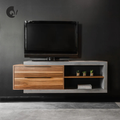 Avec son design graphique et ses lignes décalées, le meuble télé BUXTON en bois et béton joue sur l’asymétrie pour créer une pièce résolument contemporaine. Les volumes s’entrelacent avec élégance, alternant rangements fermés et niches ouvertes, pour un rendu à la fois fonctionnel et sculptural. Son esthétique épurée met en valeur l’espace et donne du caractère au salon, que le meuble soit posé au sol ou suspendu pour un effet visuel léger et aérien.