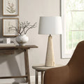 Composed of a stunning travertine base and a perfectly matching ivory linen shade, this lamp's clean design embodies the ideal balance of modern neutrality. Versatile and refined, it integrates seamlessly into both transitional and contemporary décor, whether placed next to a sofa, a cozy armchair, or paired with another on a console table. It diffuses a soft, enveloping light, bringing warmth and harmony to any room.