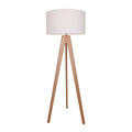 This floor lamp captivates with its sleek design and natural inspiration. Its wooden tripod base provides stability and warmth, while the cylindrical lampshade diffuses a soft, enveloping light, ideal for creating a soothing atmosphere.