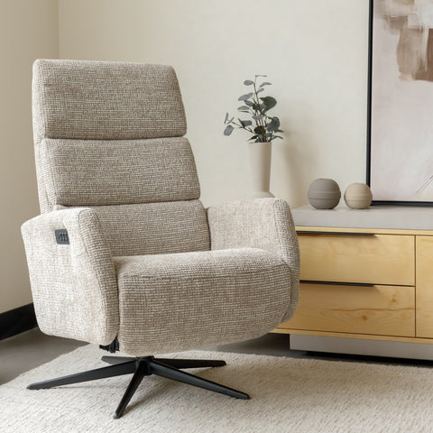 Treat yourself to a moment of pure relaxation with this 360° swivel recliner featuring a timeless design, crafted to combine premium comfort, advanced functionality, and understated elegance. With its plush high backrest and soft upholstery, it blends seamlessly into any interior style, from the most modern to the most classic.