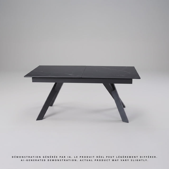 Its black marble-effect ceramic top, traversed by delicate white veins, adds a touch of timeless sophistication to your dining room. Stain and scratch resistant, it offers the look of marble with the peace of mind of easy maintenance.